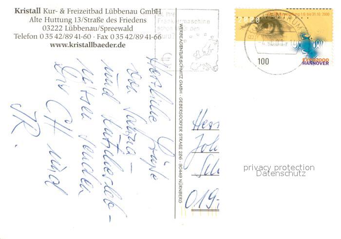 73645233 alte Postkarte Luebbenau Spreewald Kristall Kur und Freizeitbad Luebbenau Gastraum Sauna Whirlpool Massageraum postalisch gelaufen Erhaltung siehe scans [WerneD78] KatCode: 11110012066196