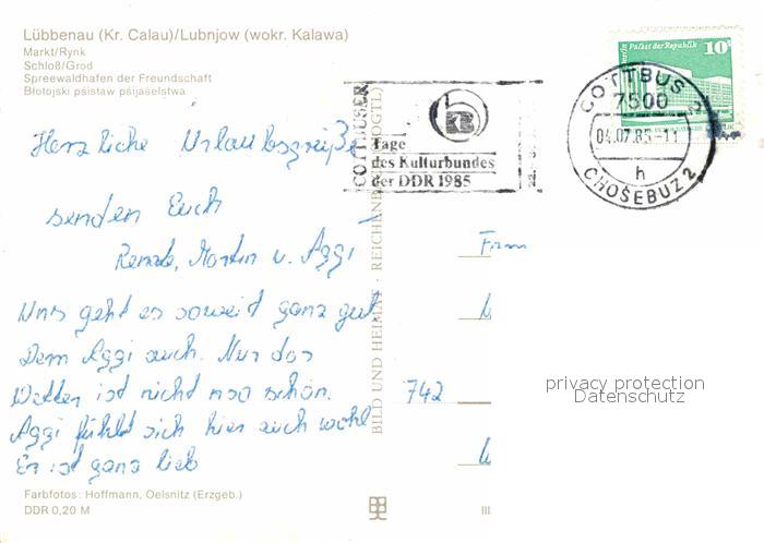 72859107 alte Postkarte Luebbenau Spreewald Markt Schloss Spreewaldhafen der Freundschaft postalisch gelaufen Erhaltung siehe scans [AndreD76] KatCode: 11110012066196