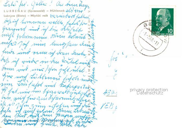 72633239 alte Postkarte Luebbenau Spreewald Muehleneck Kirche postalisch gelaufen Erhaltung siehe scans [FriedD77] KatCode: 11110012066196