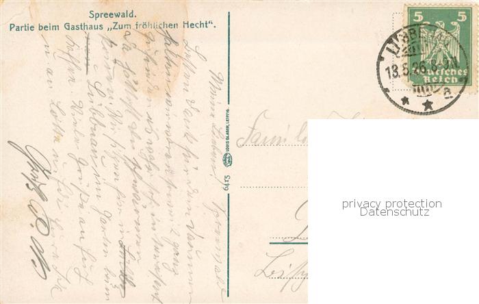 73777921 alte Postkarte Luebbenau Spreewald Partie beim Gasthaus Zum froehlichen Hecht Wasserstrasse Kahnfahrt postalisch gelaufen Erhaltung siehe scans [FriedD77] KatCode: 11110012066196