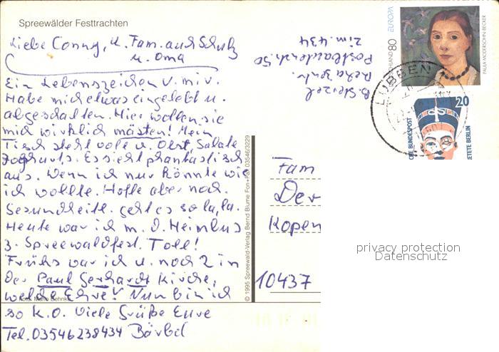 72221549 alte Postkarte Luebbenau Spreewald Spreewaelder Festtrachten postalisch gelaufen Erhaltung siehe scans KatCode: 11110012066196