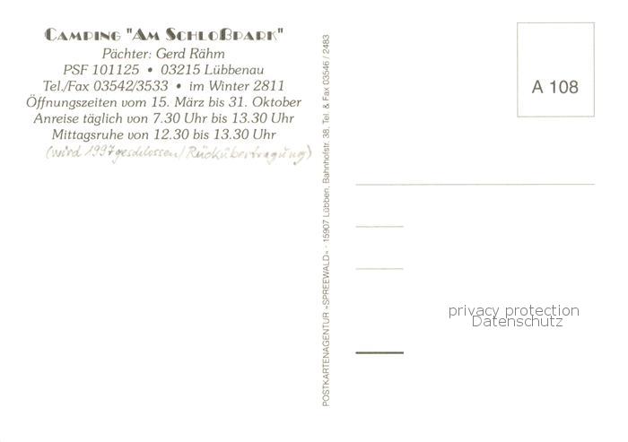 73754948 Luebbenau Spreewald Spreewaldcamping Am Schlosspark postalisch nicht gelaufen Erhaltung siehe scans [FriedD77] KatCode: 11110012066196