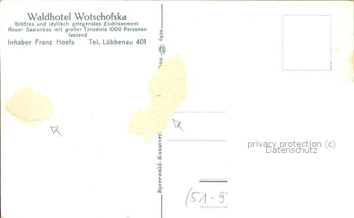 71525610 Luebbenau Spreewald Waldhotel Wotschofska Bootspartien postalisch nicht gelaufen Erhaltung siehe scans KatCode: 11110012066196