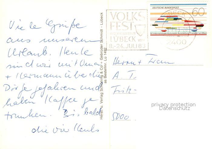 73208724 alte Postkarte Luebeck postalisch gelaufen Erhaltung siehe scans [NatalD47] KatCode: 11110001003000