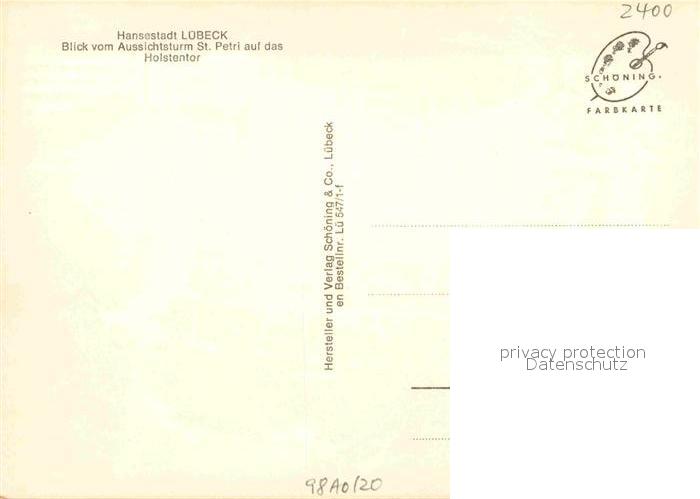 72909394 Luebeck Blick vom Aussichtsturm St. Petri auf Holstentor postalisch nicht gelaufen Erhaltung siehe scans [LiesaD40] KatCode: 11110001003000