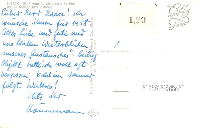 73216044 Luebeck Blick vom Aussichtsturm St Petri auf St Marien Kirche und Rathaus postalisch nicht gelaufen Erhaltung siehe scans [FriedD77] KatCode: 11110001003000