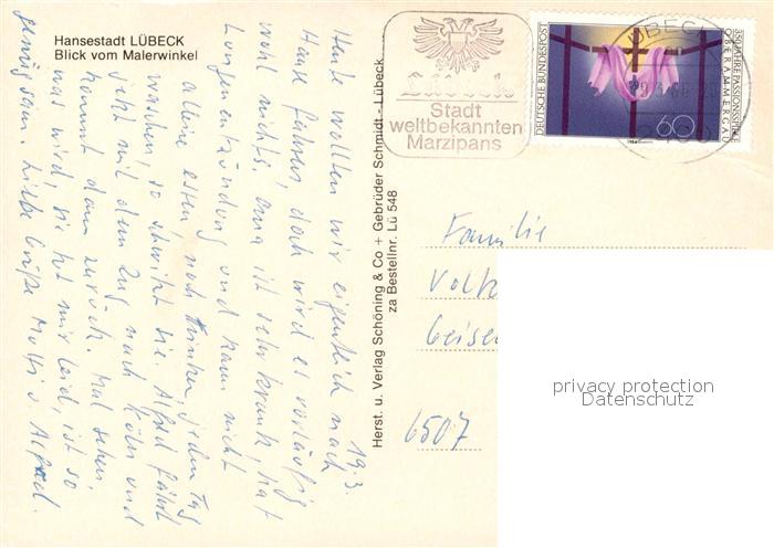 73209132 alte Postkarte Luebeck Blick vom Malerwinkel postalisch gelaufen Erhaltung siehe scans [NatalD47] KatCode: 11110001003000