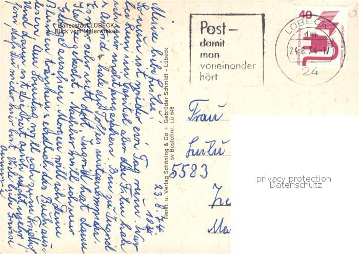 73224528 alte Postkarte Luebeck Blick vom Malerwinkel postalisch gelaufen Erhaltung siehe scans [KathaD81] KatCode: 11110001003000