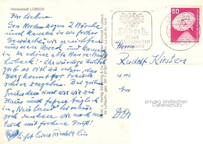 72848151 alte Postkarte LueBECK CITY Altstadt Kirche Hansestadt Fliegeraufnahme postalisch gelaufen Erhaltung siehe scans [FriedD77] KatCode: 11110001003000