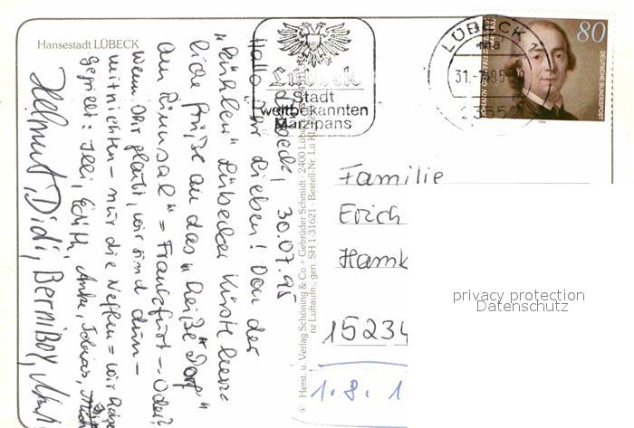 72795710 alte Postkarte LueBECK CITY Altstadt mit Holstentor Hansestadt Fliegeraufnahme postalisch gelaufen Erhaltung siehe scans [FriedD77] KatCode: 11110001003000
