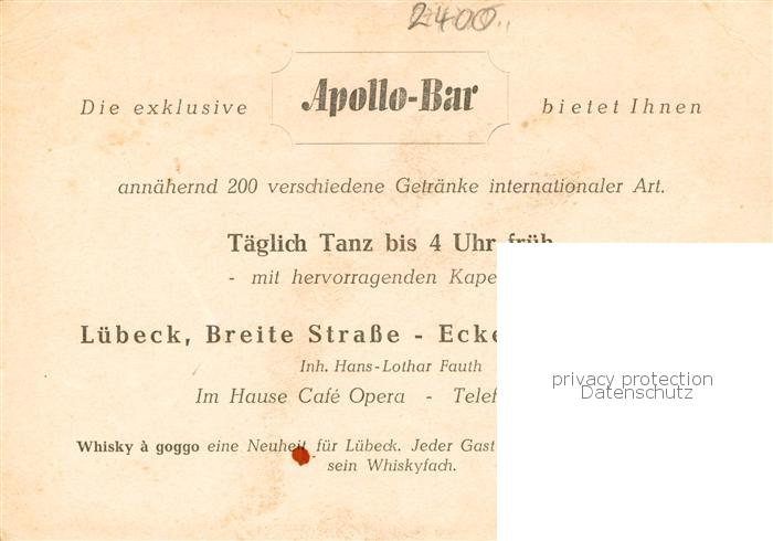 73864496 LueBECK CITY Apollo Bar postalisch nicht gelaufen Erhaltung siehe scans [WerneD78] Wern Katcode 11110001003000