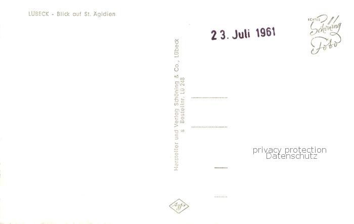 73762612 LueBECK CITY Blick auf St aegidien postalisch nicht gelaufen Erhaltung siehe scans [FriedD77] Frie Katcode 11110001003000