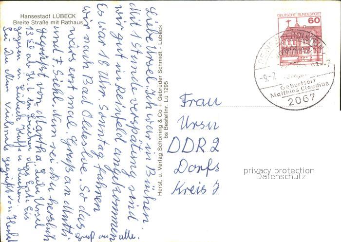 72613770 alte Postkarte LueBECK CITY Breite Strasse mit Rathaus postalisch gelaufen Erhaltung siehe scans [WerneD78] KatCode: 11110001003000