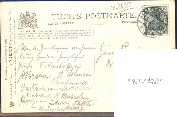 42087785 alte Postkarte LueBECK CITY Burgtor Verlag-Tucks-Oilette-Nr. 175 B postalisch gelaufen Erhaltung siehe scans KatCode: 11110001003000