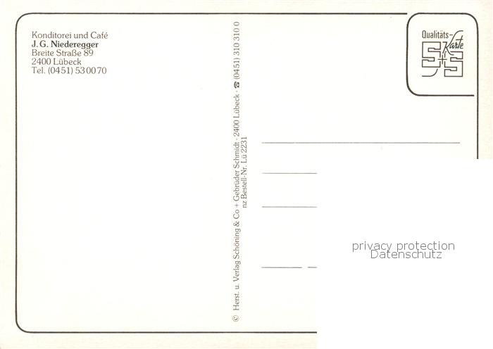 73858834 LueBECK CITY Cafe Niederegger postalisch nicht gelaufen Erhaltung siehe scans [FriedD77] Frie Katcode 11110001003000
