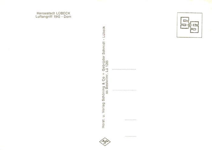 73898370 LueBECK CITY Dom beim Luftangriff 1942 postalisch nicht gelaufen Erhaltung siehe scans [WerneD78] Wern Katcode 11110001003000
