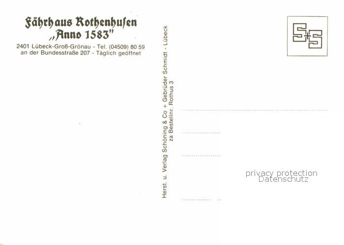 72842758 LueBECK CITY Faehrhaus Rothenhusen postalisch nicht gelaufen Erhaltung siehe scans [AndreD76] KatCode: 11110001003000