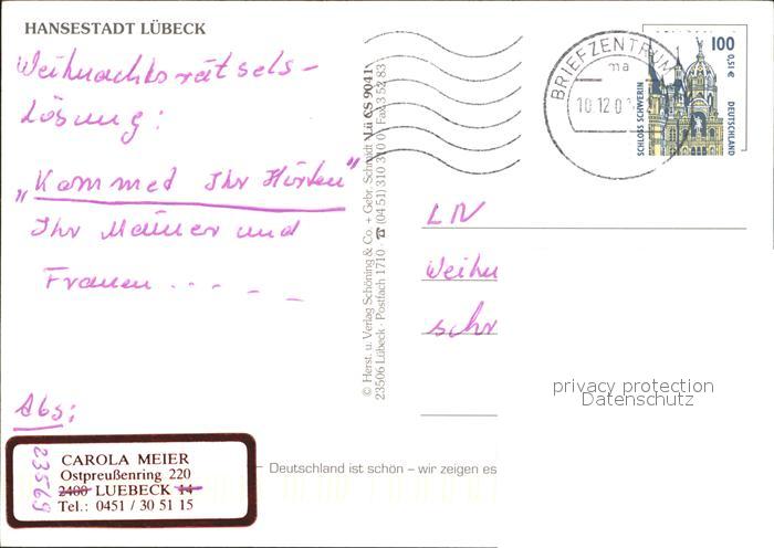 72248087 alte Postkarte LueBECK CITY Fliegeraufnahme postalisch gelaufen Erhaltung siehe scans KatCode: 11110001003000