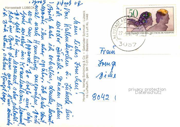 72837389 alte Postkarte LueBECK CITY Fliegeraufnahme postalisch gelaufen Erhaltung siehe scans [NatalD47] KatCode: 11110001003000