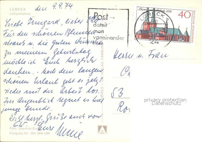 72156615 alte Postkarte LueBECK CITY Fliegeraufnahme postalisch gelaufen Erhaltung siehe scans KatCode: 11110001003000
