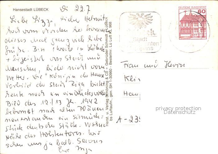 71908826 alte Postkarte LueBECK CITY Fliegeraufnahme postalisch gelaufen Erhaltung siehe scans KatCode: 11110001003000