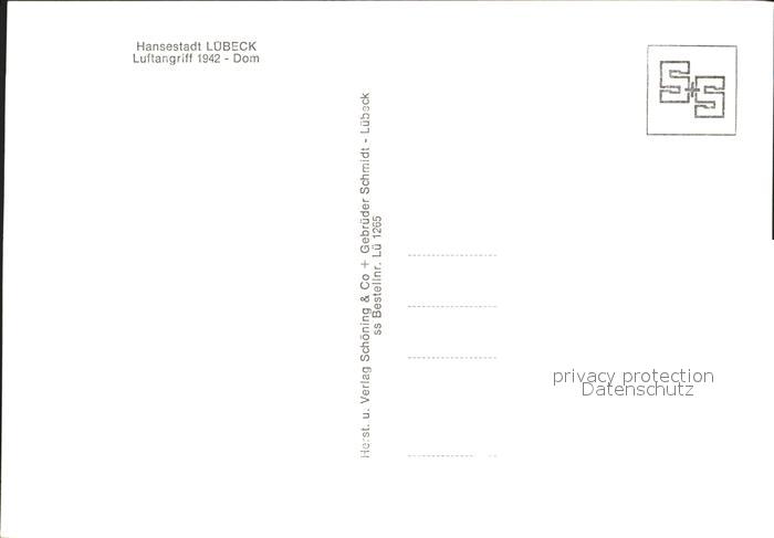 72201883 LueBECK CITY Fliegeraufnahme Dom bei Luftangriff 1942 postalisch nicht gelaufen Erhaltung siehe scans KatCode: 11110001003000