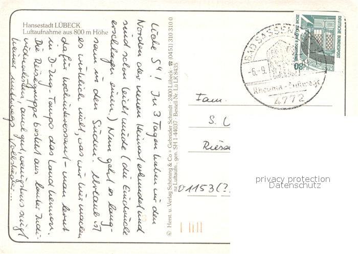 73683864 LueBECK CITY Fliegeraufnahme Hansestadt postalisch gelaufen Erhaltung siehe scans [LiesaD40] alte Postkarte Lies Katcode 11110001003000