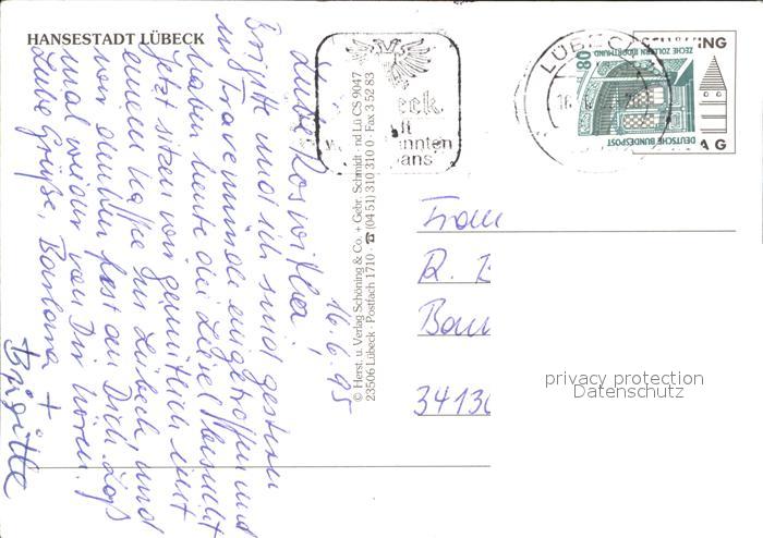 72598382 alte Postkarte LueBECK CITY Fliegeraufnahme Hansestadt an der Trave postalisch gelaufen Erhaltung siehe scans [LiesaD40] KatCode: 11110001003000
