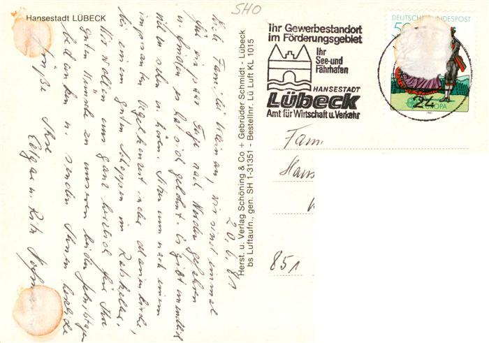 73880035 LueBECK CITY Fliegeraufnahme mit Kirche postalisch gelaufen Erhaltung siehe scans [WerneD78] alte Postkarte Wern Katcode 11110001003000