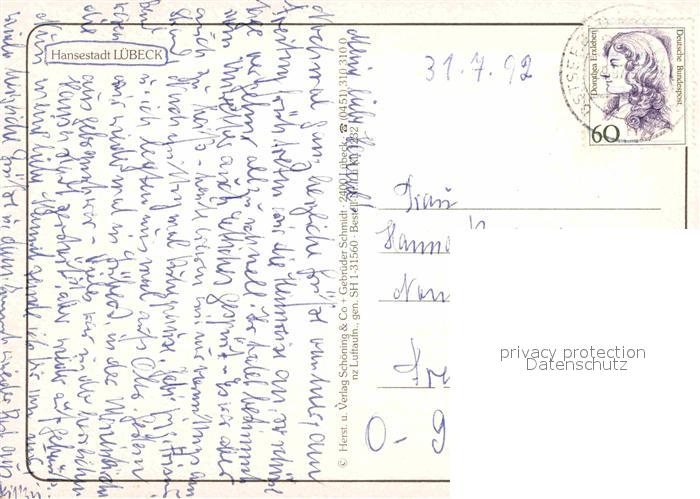 72856805 alte Postkarte LueBECK CITY Fliegeraufnahme postalisch gelaufen Erhaltung siehe scans [LiesaD40] KatCode: 11110001003000