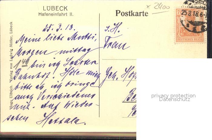 42087806 alte Postkarte LueBECK CITY Hafeneinfahrt II. postalisch gelaufen KatCode: 11110001003000