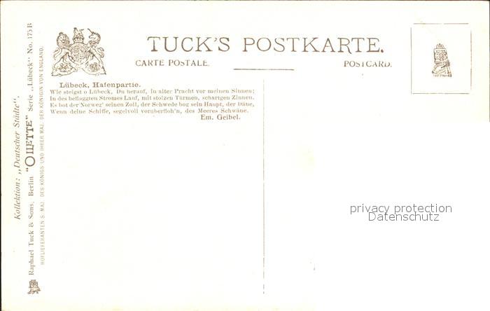 42086477 LueBECK CITY Hafenpartie Verlag-Tucks-Oilette-Nr. 175 B postalisch nicht gelaufen Erhaltung siehe scans KatCode: 11110001003000