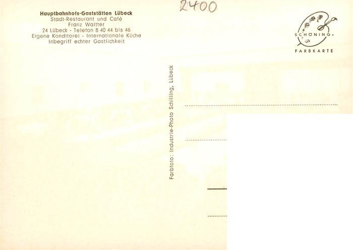 73894925 LueBECK CITY Hauptbahnhofs Gaststaetten Luebeck Stadt Restaurant Cafe postalisch nicht gelaufen Erhaltung siehe scans [WerneD78] Wern Katcode 11110001003000