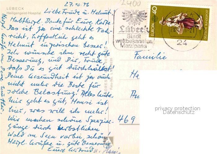 72706129 alte Postkarte LueBECK CITY Heiligengeist Hospital postalisch gelaufen Erhaltung siehe scans [WerneD78] KatCode: 11110001003000