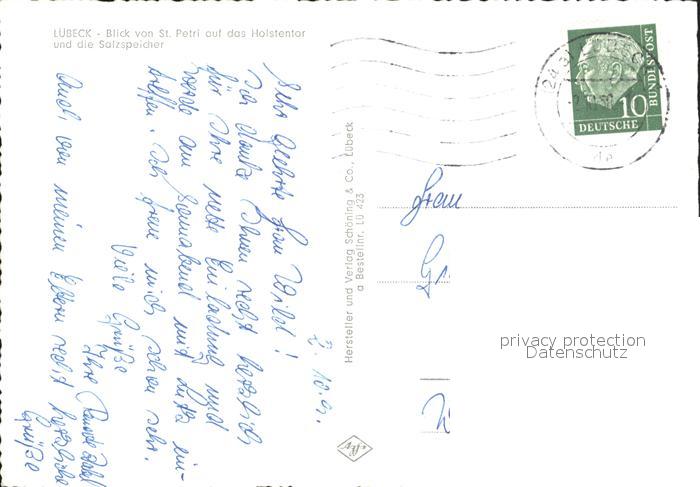 72298337 alte Postkarte LueBECK CITY Holstentor mit Salzspeicher postalisch gelaufen Erhaltung siehe scans KatCode: 11110001003000