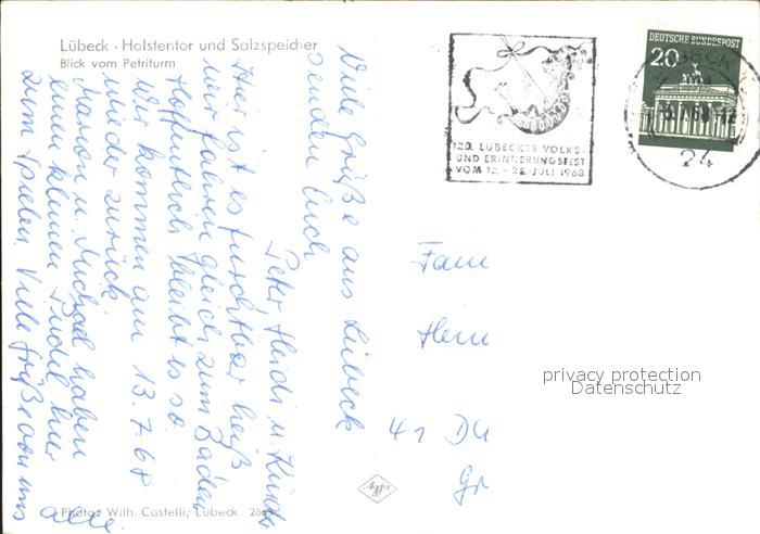 72204345 alte Postkarte LueBECK CITY Holstentor und Salzspeicher postalisch gelaufen Erhaltung siehe scans KatCode: 11110001003000
