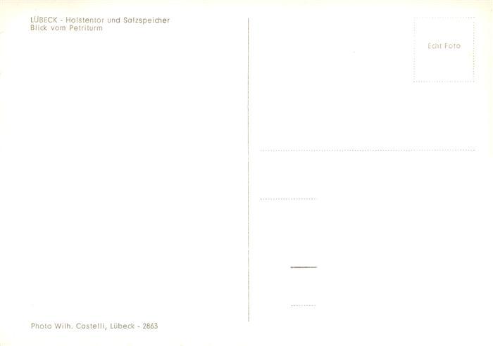73875756 LueBECK CITY Holstentor und Salzspeicher Blick vom Petriturm postalisch nicht gelaufen Erhaltung siehe scans [FriedD77] Frie Katcode 11110001003000