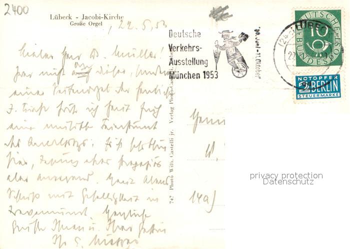 73694858 LueBECK CITY Jacobi-Kirche Grosse Orgel postalisch gelaufen Erhaltung siehe scans [LiesaD40] alte Postkarte Lies Katcode 11110001003000
