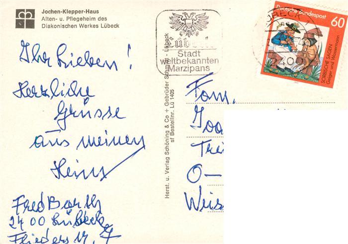 73942670 LueBECK CITY Jochen Klepper Haus Alten und Pflegeheim postalisch gelaufen Erhaltung siehe scans [FriedD77] alte Postkarte Frie Katcode 11110001003000