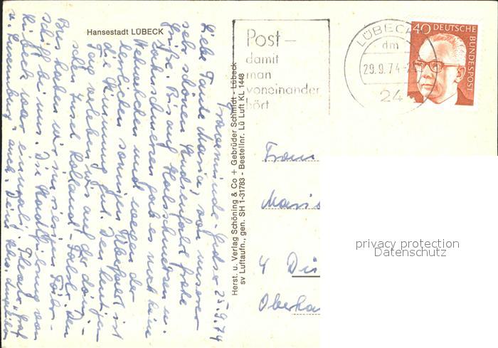72263106 alte Postkarte LueBECK CITY Kirche Hansestadt Fliegeraufnahme postalisch gelaufen Erhaltung siehe scans KatCode: 11110001003000