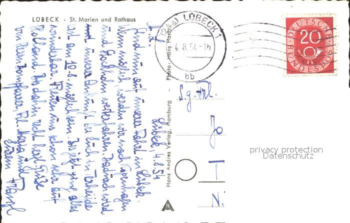 72394444 alte Postkarte LueBECK CITY Kirche St Marien Rathaus postalisch gelaufen Erhaltung siehe scans KatCode: 11110001003000