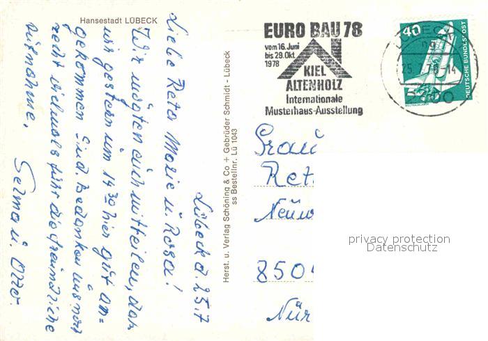 72775589 alte Postkarte LueBECK CITY Kirche postalisch gelaufen Erhaltung siehe scans [KathaD81] KatCode: 11110001003000