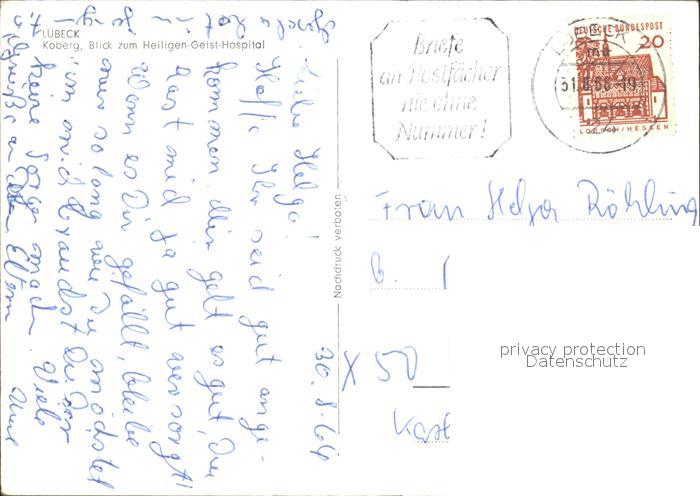 72180235 alte Postkarte LueBECK CITY Koberg Heilgen Geist Hospital postalisch gelaufen Erhaltung siehe scans KatCode: 11110001003000