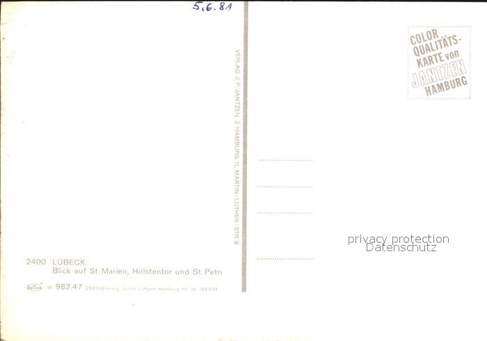 72580219 LueBECK CITY Luftaufnahme Sankt Maienkirche Holstentor Sankt Petri postalisch nicht gelaufen Erhaltung siehe scans [KathaD79] KatCode: 11110001003000