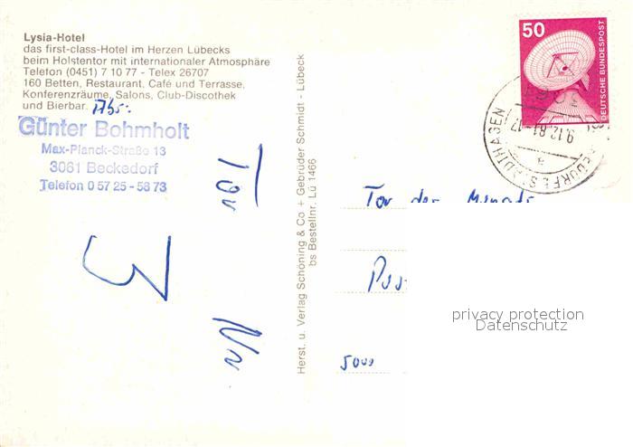 72751943 alte Postkarte LueBECK CITY Lysia Hotel Muenster postalisch gelaufen Erhaltung siehe scans [KathaD81] KatCode: 11110001003000