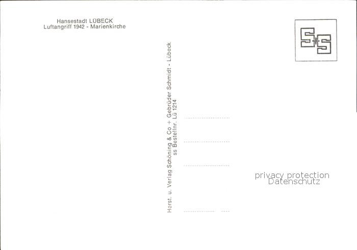 72201884 LueBECK CITY Marienkirche bei Luftangriff 1942 postalisch nicht gelaufen Erhaltung siehe scans KatCode: 11110001003000