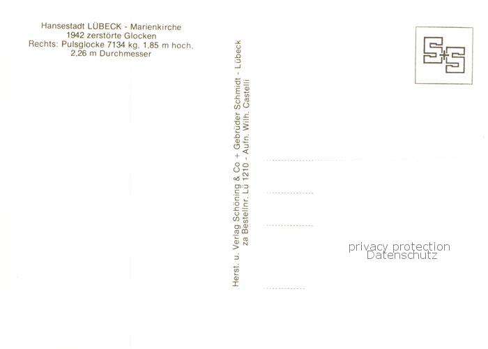 73789828 LueBECK CITY MArienkirche zerstoerte Glocken postalisch nicht gelaufen Erhaltung siehe scans [LiesaD40] Lies Katcode 11110001003000