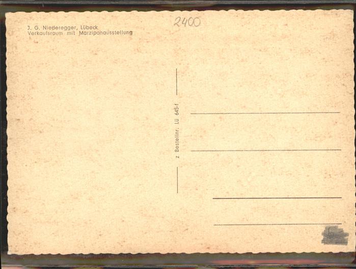 41290762 LueBECK CITY Marzipanausstellung Verkaufsraum postalisch nicht gelaufen gute Erhaltung Alte Ansichtskarte Postkarte hz_L Katcode 11110001003000