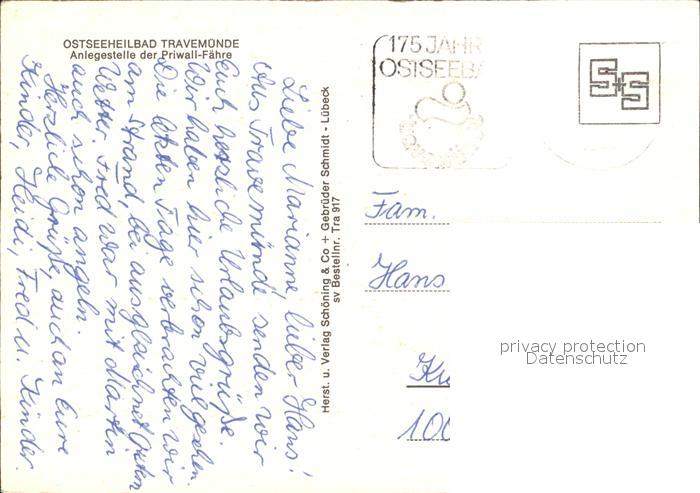 72053910 alte Postkarte LueBECK CITY OstseeheilbadAnlegestelle der Priwall Faehre postalisch gelaufen KatCode: 11110001003000
