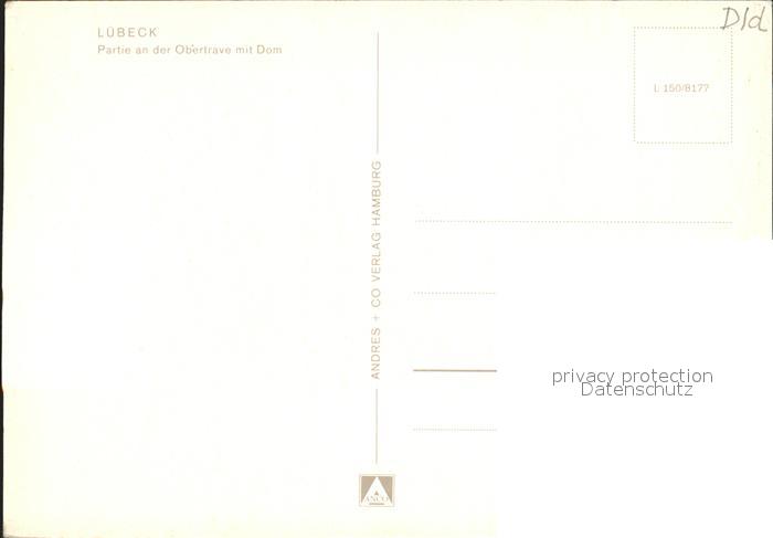 72270783 LueBECK CITY Partie an der Obertrave mit Dom Frachtkahn postalisch nicht gelaufen Erhaltung siehe scans KatCode: 11110001003000